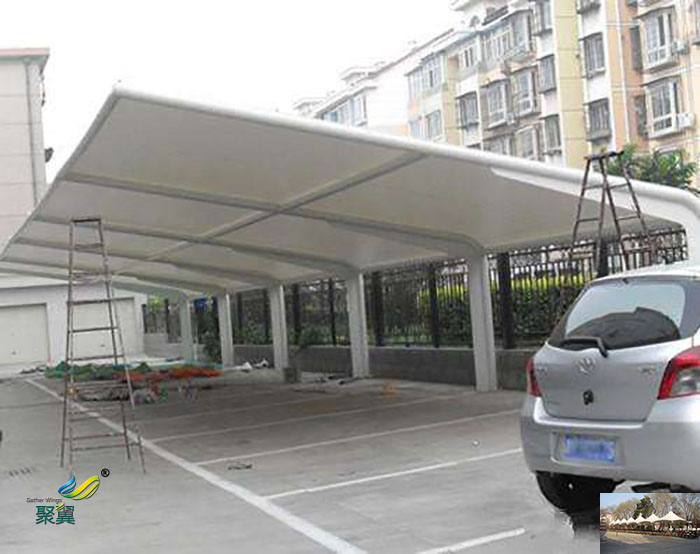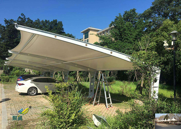 2、膜結(jié)構(gòu)車棚我們應(yīng)該知道張拉膜結(jié)構(gòu)車棚安裝重要在于實現(xiàn)張拉膜和鋼結(jié)構(gòu)支撐系統(tǒng)的協(xié)同工作.張拉膜是在支撐結(jié)構(gòu)的拉力和自身重力的作用下繃緊,形成曲面。