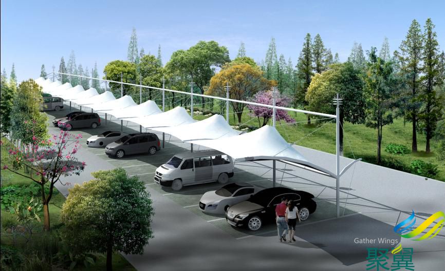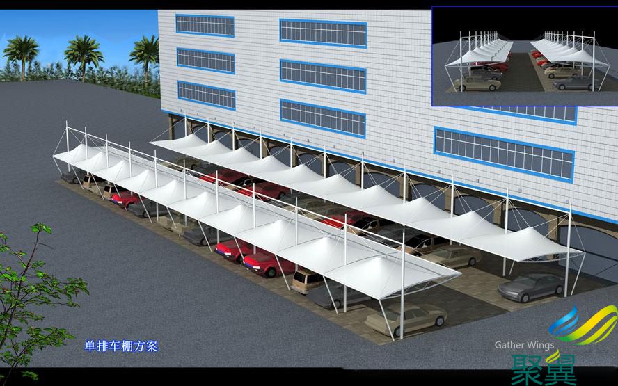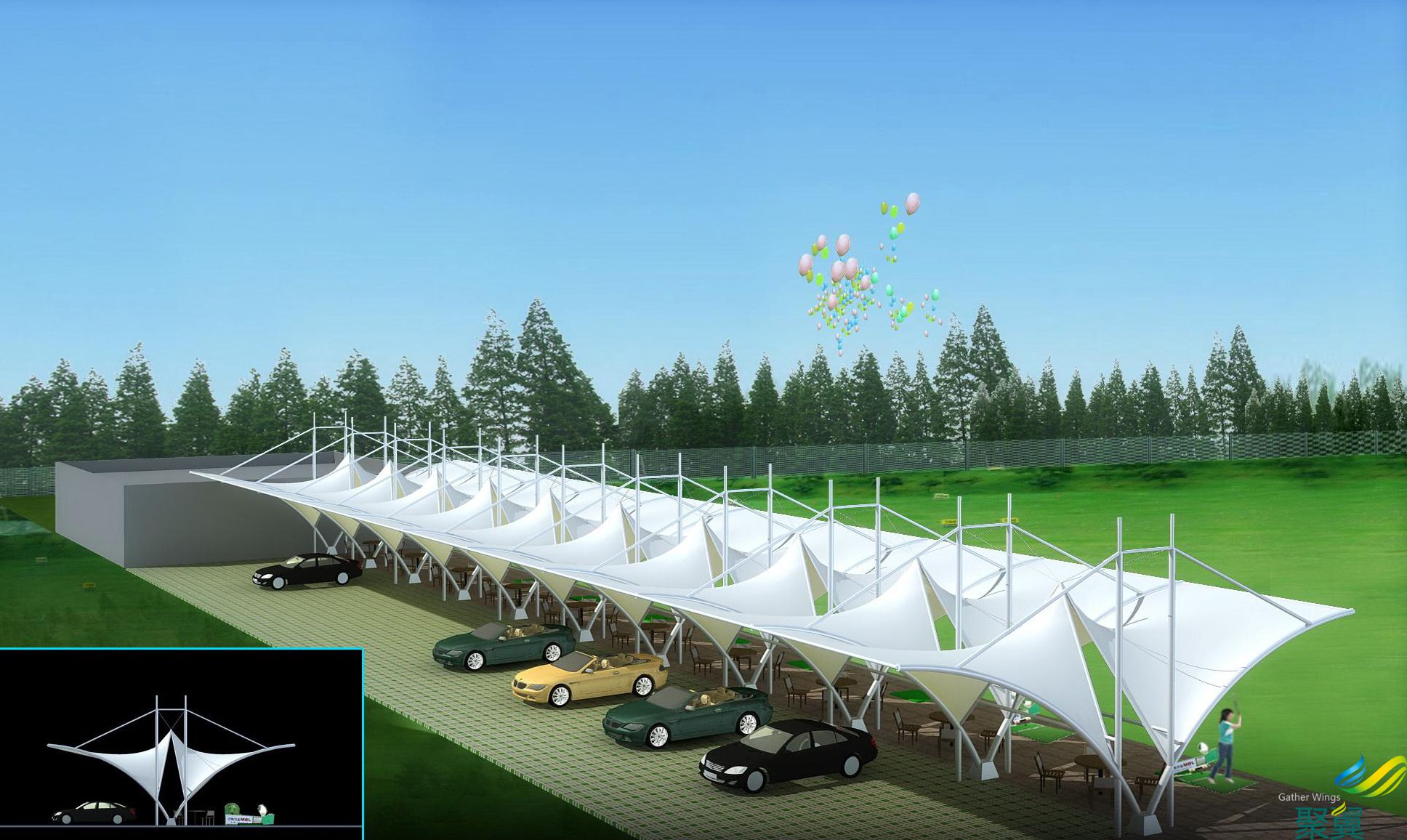 - 2012膜結(jié)構(gòu)最新款汽車遮陽棚聚翼JY80系列80A款膜結(jié)構(gòu)車棚