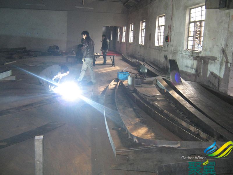 莊信萬豐膜結構汽車停車棚鋼結構骨架現(xiàn)場安裝(見下圖2-3)