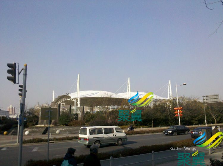 五角場對面網(wǎng)球場膜結(jié)構(gòu)遮陽篷施工案例