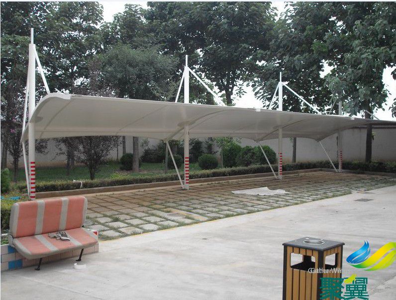 深圳膜結構車棚款式,車棚防火難燃、自潔性好