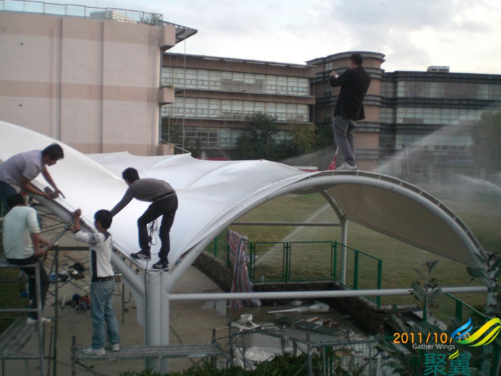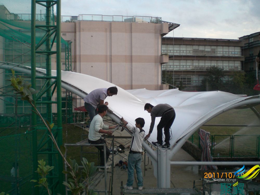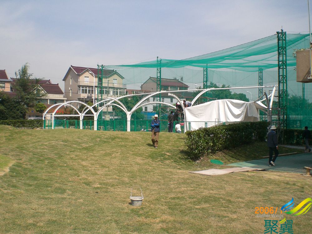 膜結(jié)構(gòu)發(fā)球臺(tái)工程實(shí)例施工地址:上海市閔行區(qū)莘朱路新加坡國(guó)際學(xué)校,體育活動(dòng)區(qū)高爾夫區(qū)域發(fā)球臺(tái)膜結(jié)構(gòu)遮陽(yáng)設(shè)計(jì)制作單位聚翼遮陽(yáng)獨(dú)立承包施工于2010年8月28日竣工檢收!業(yè)務(wù)負(fù)責(zé)王杰(業(yè)務(wù)經(jīng)理)13917686158,項(xiàng)目施工負(fù)責(zé)人:梁工13621914574,工程驗(yàn)收負(fù)責(zé)人:朱工021-61726028