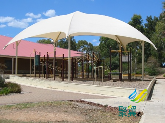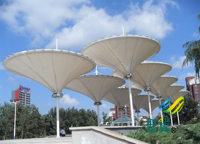 在園林景觀的組成要素中,植物并是唯一有生命的,植物雖然可以隨四季的變化而形成豐富多彩的景觀,但是在園林中還存在另一種很好的建筑,也是存在著生機(jī)勃勃的氣息。它們不僅可以美化城市,更重要的是可以改變城市中亂停亂放的嘈雜現(xiàn)象,因此,在現(xiàn)代社會(huì)中成為了景觀園林中必不可缺的一物————那就是膜結(jié)構(gòu)車(chē)棚