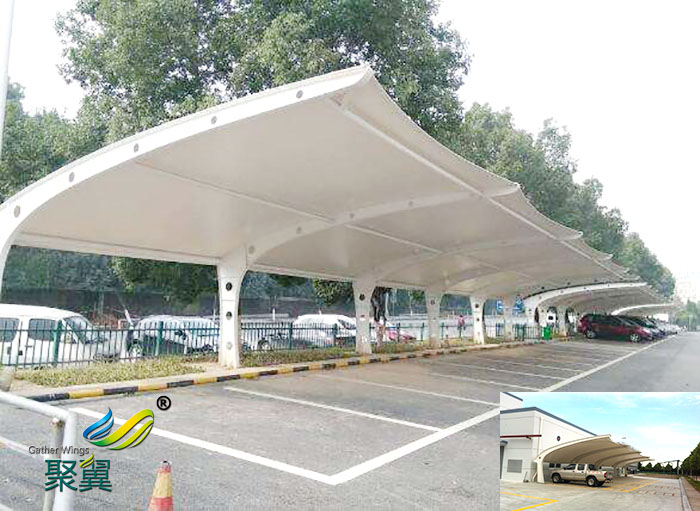 膜結(jié)構(gòu)汽車棚具有藝術(shù)性,除了一般的雨篷具有不可比擬的使用價值,且比較耐用,具有遮風(fēng)擋雨的效果,不僅如此,還給人以審美享受。它本身具有柔軟的曲線效果,并且可以柔軟靈活,形狀豐富,使用起來非常方便。