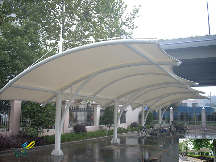 膜結(jié)構(gòu)停車棚采用抗高強(qiáng)度沖擊的聚碳酸酯材料,強(qiáng)度是玻璃的200倍左右。原材料從德國進(jìn)口并在國內(nèi)加工,通過雙面共擠工藝添加了防紫外線材料(UV),可有效遮擋98%以上的紫外線,保護(hù)汽車表面油漆,更能 有效控制車內(nèi)溫度持續(xù)上升,而且在陽光直射下。車內(nèi)溫度可達(dá)到60℃以上,安裝后可有效降至40℃左右。同時(shí)還具備阻燃效果,并能在-30℃至60℃(137℃出現(xiàn)熱變形現(xiàn)象)環(huán)境下正常使用30年以上。落水管采用的是高強(qiáng)度鋁合金材料,獨(dú)特的人性化設(shè)計(jì),避免頂棚積水下落地面時(shí)給汽車和您造成第二次污染。結(jié)構(gòu)合理且易于清理,能方便膜結(jié)構(gòu)停車棚清除管內(nèi)污物。