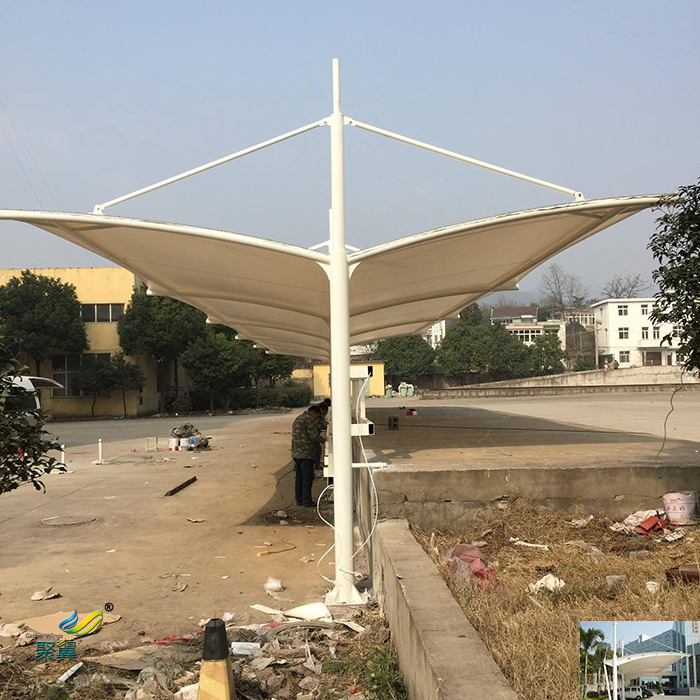 1.寧波膜結(jié)構(gòu)車(chē)棚具有強(qiáng)度高,耐久性好,防火難燃,自潔性好,不受紫外線影響且自重輕,約相當(dāng)于以前的鋼制頂棚重量的1/30等優(yōu)點(diǎn)。事先在工廠進(jìn)行裁斷熔接后在現(xiàn)場(chǎng)安裝即可,可以縮短建設(shè)工期。