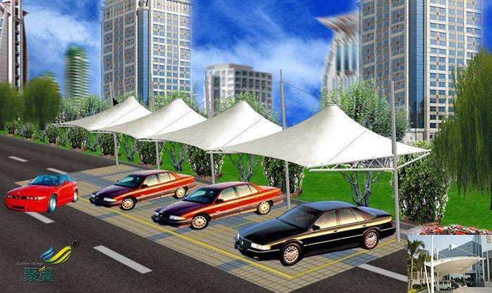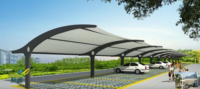 膜結(jié)構(gòu)車(chē)棚白天,陽(yáng)光透過(guò)膜面使建筑物內(nèi)充滿(mǎn)夜自然漫射光。夜晚,室內(nèi)燈光透過(guò)膜面給空增添了夢(mèng)幻般的夜景。當(dāng)膜結(jié)構(gòu)用于體育館、娛樂(lè)設(shè)施時(shí),可以實(shí)現(xiàn)全天內(nèi)的舒適相結(jié)合的理想的商業(yè)空間。