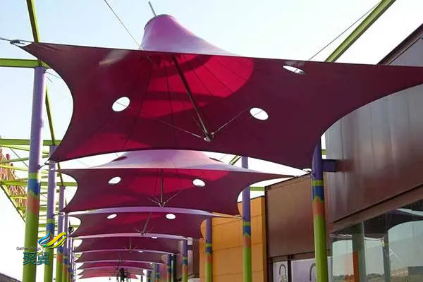 紅色是**朝氣的色彩,活力十足。紅色的膜結(jié)構(gòu)車(chē)棚的使用,讓空間變得艷麗、豐富。明朗的紅色有助于相處中氣氛的融合,氛圍的活躍。鮮艷熱烈的紅色能很好地烘托環(huán)境溫馨、時(shí)尚的感覺(jué),深得業(yè)主的青睞。