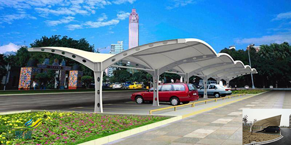 成為大跨度空間結(jié)構(gòu)的主要形式之一。停車場的規(guī)劃和建設(shè)成為現(xiàn)代城市規(guī)劃的重要組成部分,變的越來越重要。膜結(jié)構(gòu)輕巧、別致的造型在停車場及候車廳的建設(shè)中擔(dān)當(dāng)了重要角色,除了滿足防風(fēng)雨、防日曬等基本功能外,并有較好的標(biāo)識招攬效果,展現(xiàn)了人們個性化的一面。