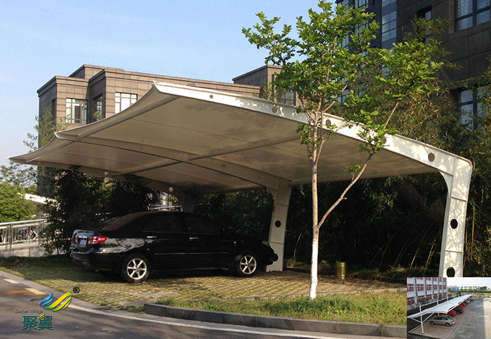 第四、自由獨(dú)特的造型,膜結(jié)構(gòu)車棚造型多變,能夠適應(yīng)不同風(fēng)格建筑,更加新穎美觀,而且膜材料的色彩豐富、鮮艷,視覺效果非常好。相對于傳統(tǒng)車棚,它的美觀特性更是得到了充分的展現(xiàn)。
