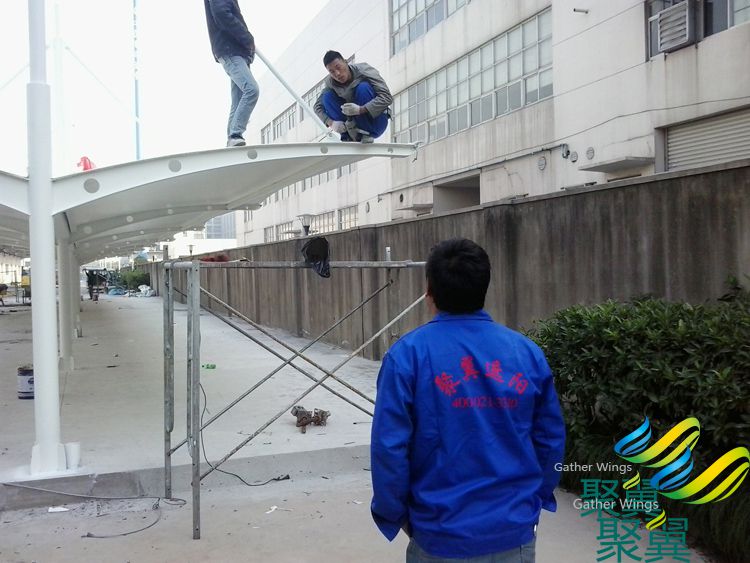 項(xiàng)目類型:自行車停車棚 項(xiàng)目材料:PVDF專業(yè)自行車棚遮陽面料 產(chǎn)品系列:大氣上檔次 工程地點(diǎn):杭州市余杭區(qū) 項(xiàng)目預(yù)算:大氣上檔次 杭州市余杭區(qū)星橋街道自行車雨棚采用PVDF專業(yè)自行車棚遮陽面料,經(jīng)久耐用,美觀大方,下圖為我司工作人員安裝現(xiàn)場(chǎng):