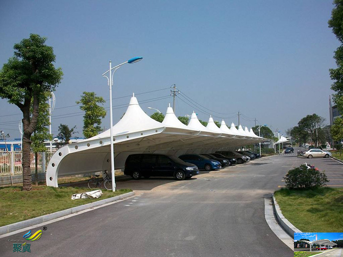 3.膜結(jié)構(gòu)停車棚大跨度。沒有柱子的空間。