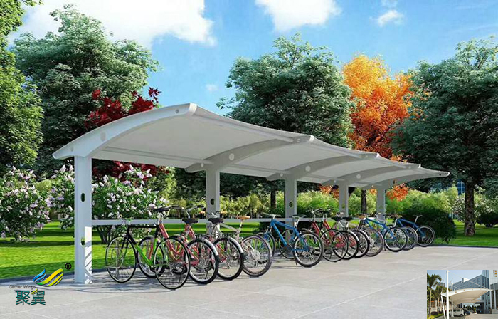 藝術(shù)性:除了一般雨蓬不可比擬的實用、耐用、遮風擋雨的功能外,膜結(jié)構(gòu)雨蓬更是一座雕塑,一件藝術(shù)品,給人美的視覺享受。