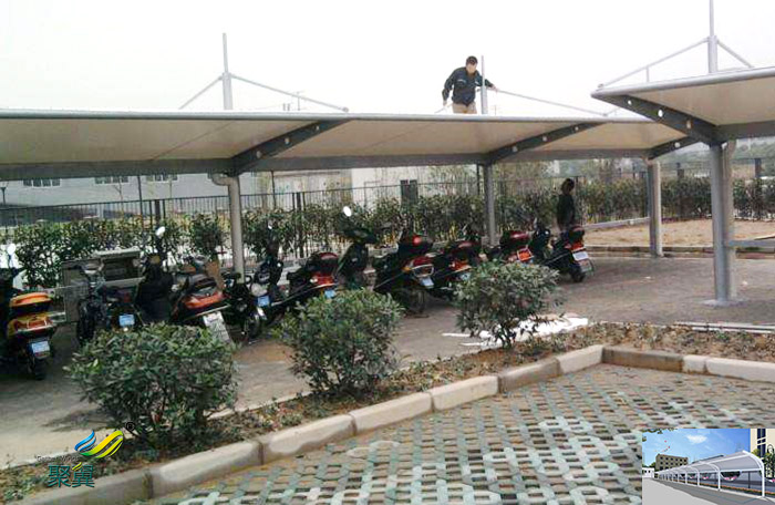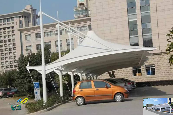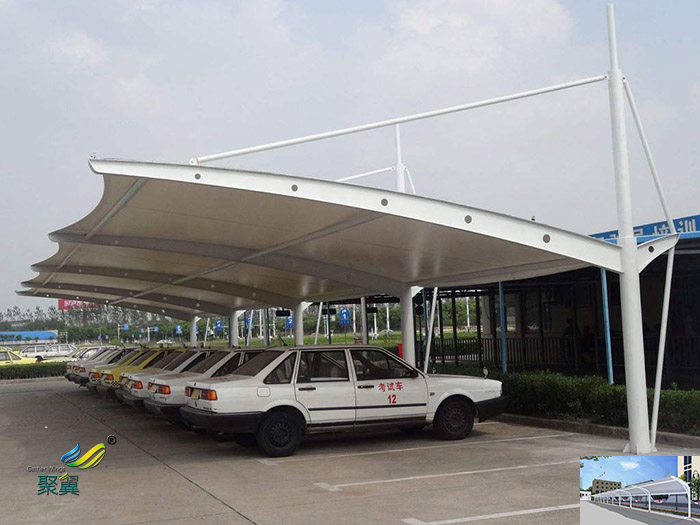 膜結構車棚具有十分良好的承載性能,能以很小的厚度承受相當大的荷載。車棚的強度和剛度主要是利用了其幾何形狀的合理性,以材料直接受壓來代替彎曲內力,從而充分發(fā)揮材料的潛力。因此車棚是一種強度高、剛度大、材料省的即經濟又合理的結構形式。膜結構車棚已經融入到了我們的生活中,外觀靚麗,實用性較高深得用戶者們的喜愛,多種優(yōu)點豐富便捷了我們的生活。
