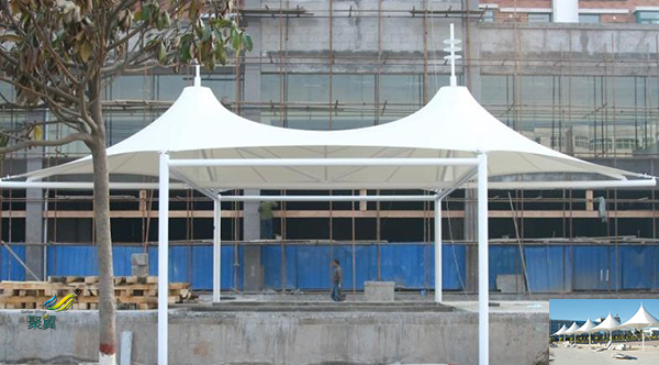 5、膜結(jié)構(gòu)使用壽命及特點(diǎn):膜結(jié)構(gòu)車棚的篷布材質(zhì)是膜材,而膜材的最大特點(diǎn)是強(qiáng)度高、耐久性好、防火難燃、自潔性好,不受紫外線影響,使用壽命長,一般 15-30年。具有高透光率,透光率為13%~20%,對熱能反射率73%,熱吸收量很少。正是因?yàn)檫@種劃時代丹材料的發(fā)明,使膜結(jié)構(gòu)車棚成為現(xiàn)代化的永久建筑。