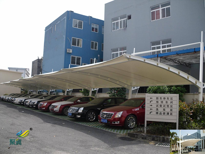 骨架式膜結(jié)構(gòu)車棚,以鋼構(gòu)或是集成材構(gòu)成的屋頂骨架后,在其上方張拉膜材的構(gòu)造形式,下部支撐結(jié)構(gòu)安定性高,因屋頂造型比較單純,開口部不易受限制,且經(jīng)濟(jì)效益高等特點(diǎn)。膜結(jié)構(gòu)車棚廣泛適用于任何大小規(guī)模的空間。