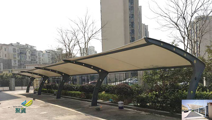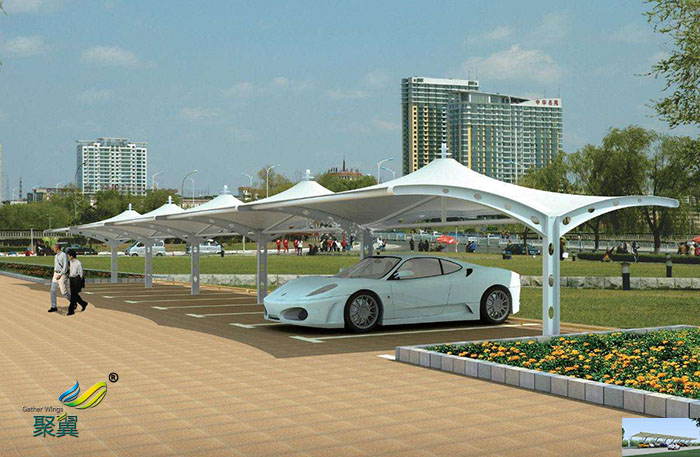 2.膜結(jié)構(gòu)定制停車車棚空間跨度大—空間跨度大,重量輕,膜結(jié)構(gòu)停車棚會(huì)保證棚下人和物的安全。