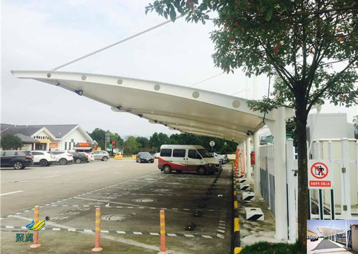 4.膜結(jié)構(gòu)定制停車車棚耐久性強(qiáng)—PVDF高強(qiáng)度建筑膜材,膜結(jié)構(gòu)停車棚廣泛應(yīng)用于上海世博園、鳥巢等,壽命長(zhǎng)達(dá)15-30年。