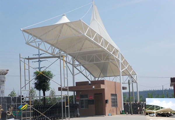 1、膜結(jié)構(gòu)停車棚本身是依靠膜自身的張拉應(yīng)力與支撐桿和拉索共同構(gòu)成的體系,此結(jié)構(gòu)特別適合用來建造城市標志性建筑物,如體育與娛樂性場館,廣告效應(yīng)的商場、餐廳、城市的命脈的關(guān)鍵性建筑,這時新型膜材用于此可以體現(xiàn)出更好的益處。