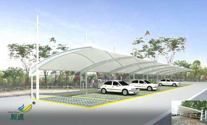 1、因為高強度的膜材出現(xiàn),再加上張拉膜的使用,使膜構造車棚抵擋風雨的才能是通常雨蓬之類不行比較的。