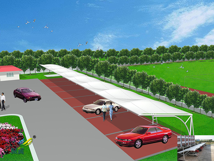 4、膜結(jié)構(gòu)停車棚抗沖擊性:材料的沖擊強度是普通玻璃的200倍,是亞克力的板材的20倍,幾乎沒有斷裂的危險性。
