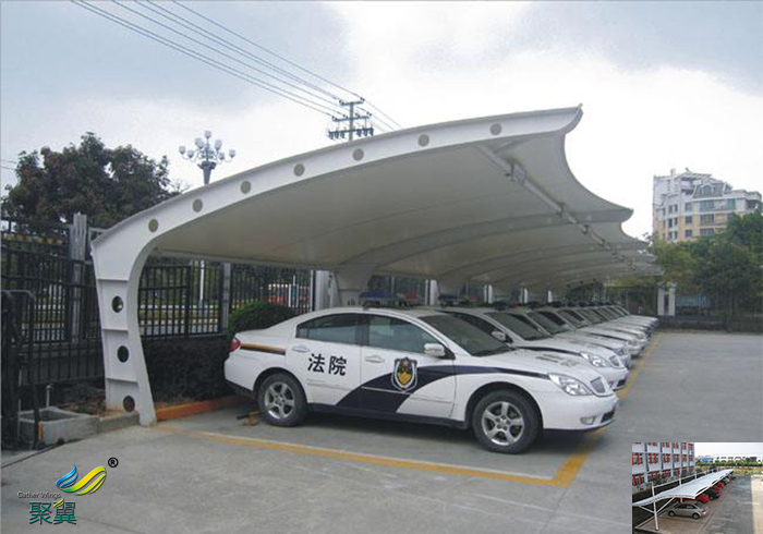 2.膜結構車棚自清潔光傳輸:建筑物膜其通常使用的,穩(wěn)定的物理性能和特別好的PVDF材料涂層具有自清潔效果的外觀,雨水可以通過本身在通常的膜塵條件洗滌,建筑物使用壽命得到保證。