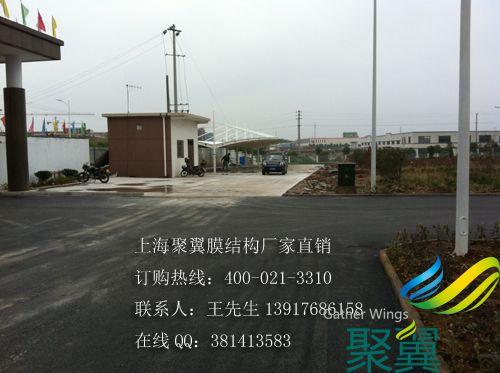 膜結(jié)構(gòu)車棚膜布安裝現(xiàn)場:照片(見下圖)