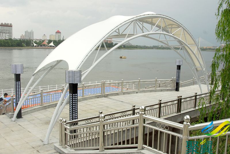 膜結(jié)構(gòu)景觀棚在過(guò)道景觀美觀得體,具有現(xiàn)代化均意!......