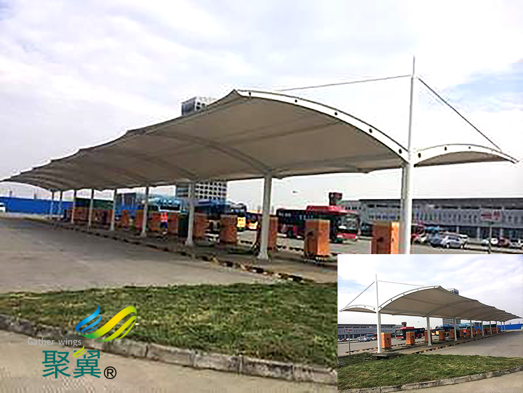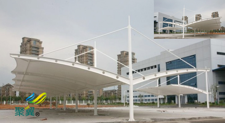 詳細>>杭州膜結(jié)構(gòu)工廠車棚價格擋雨陽篷批發(fā)來圖定制多少錢?