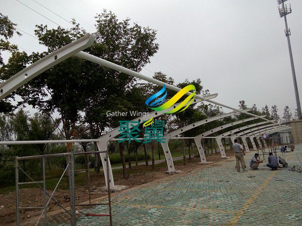 詳細>>徐州新沂JY-20G膜結構車棚施工中,車棚鋼材選料為:Q235鋼材...