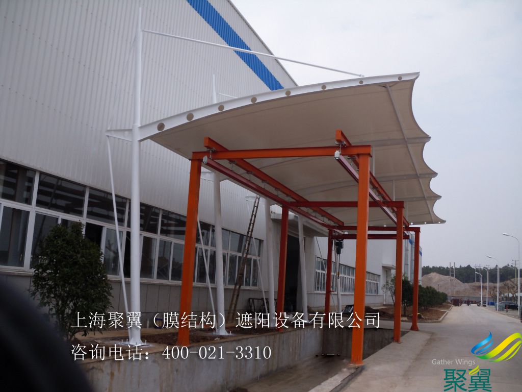 詳細(xì)>>上海市松江區(qū)四磚南路新邦物流實(shí)用型膜結(jié)構(gòu)遮陽(yáng)雨棚,卸貨區(qū)...