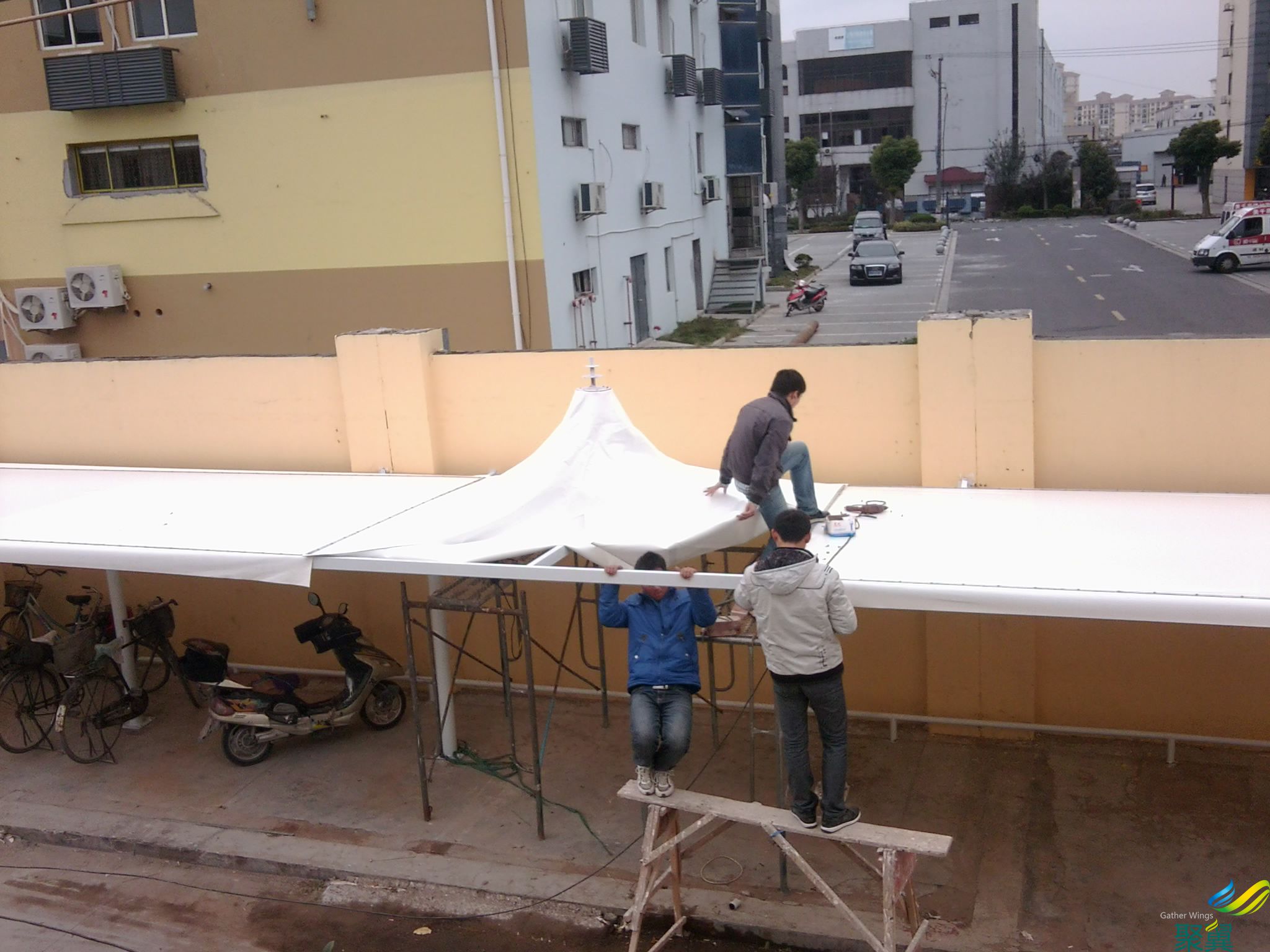 詳細(xì)>>膜結(jié)構(gòu)車棚制作操作流程:車位測量、設(shè)計、確認(rèn)方案、基礎(chǔ)預(yù)埋、鋼結(jié)構(gòu)部分焊接、鋼構(gòu)工藝、膜布...