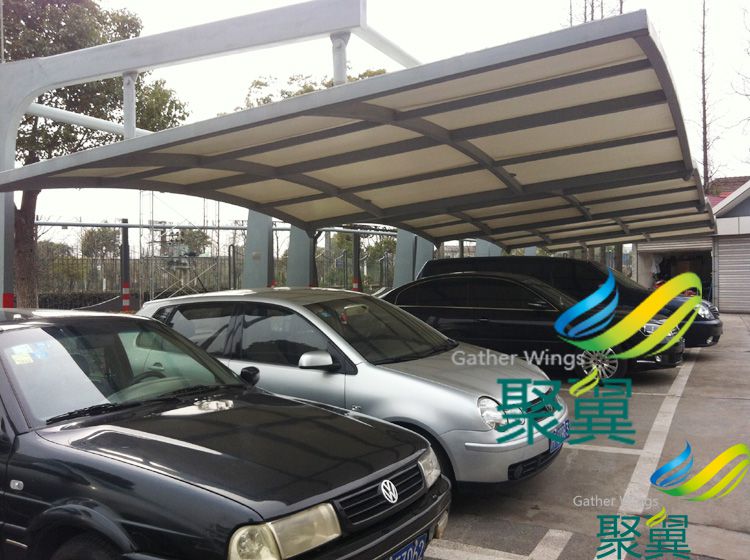 詳細>>JY10車棚是常見耐力板車棚的提升款式,普通的耐力板 或陽光板用高強度PVC膜布材料替換(PVC膜布...