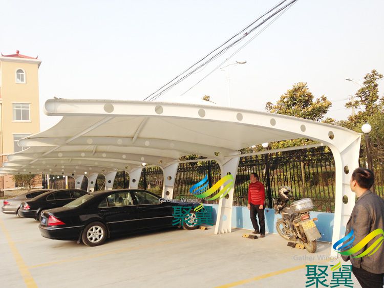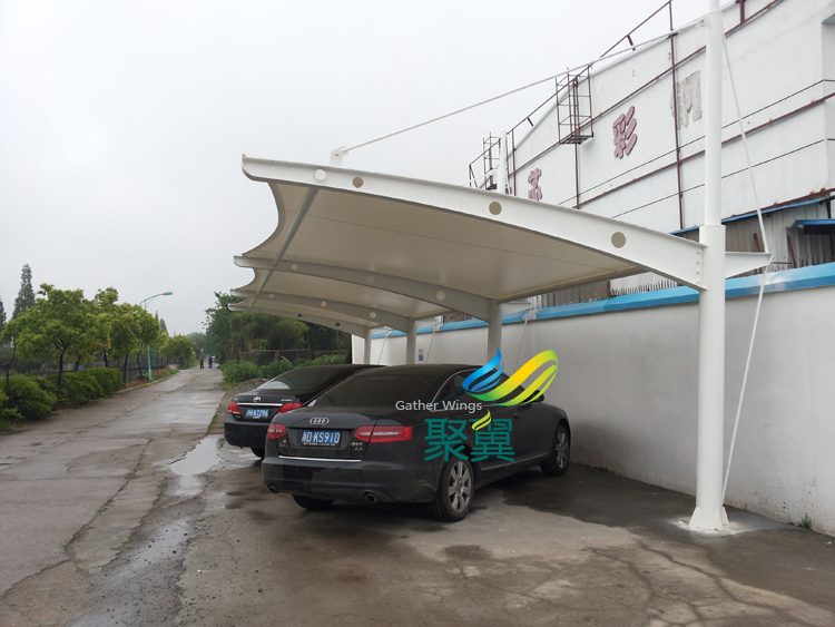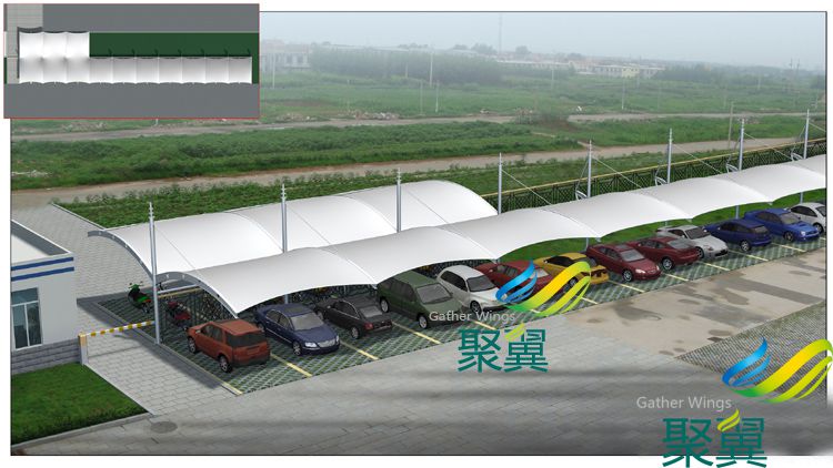 詳細>>JY-90膜結構車棚系列這90A款:車棚主體采用異型鋼結構,精密焊接,表面防銹處理配環(huán)氧富鋅專用鋼...