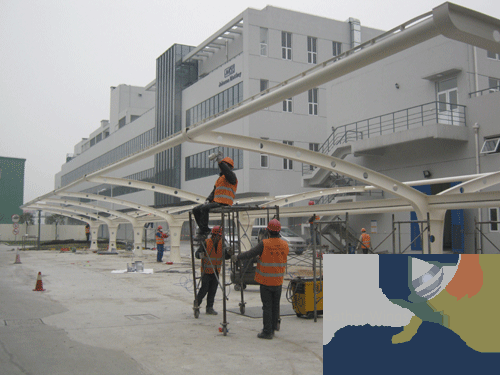 1、廠區(qū)車棚耐用性:由于高強度的膜材出現,再加上張拉技術的應用,使膜結構車棚抵御風雨的能力是一般雨蓬之類不可比擬的。