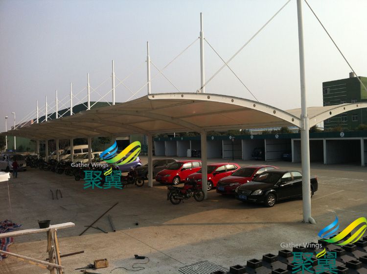 JY-20車棚主體采用加強(qiáng)型鋼結(jié)構(gòu),鋼結(jié)構(gòu)專用底面油漆。車棚面料采聚翼PVC膜布材質(zhì)保8年,自潔性能好,我司自主生產(chǎn)PVC膜布材料其表面無(wú)靜電,對(duì)灰塵沒(méi)有吸附力,易清洗。從而使得膜結(jié)構(gòu)建筑保持表面亮麗潔白,室外使用壽命約為10年。