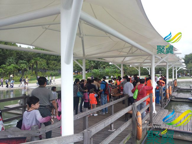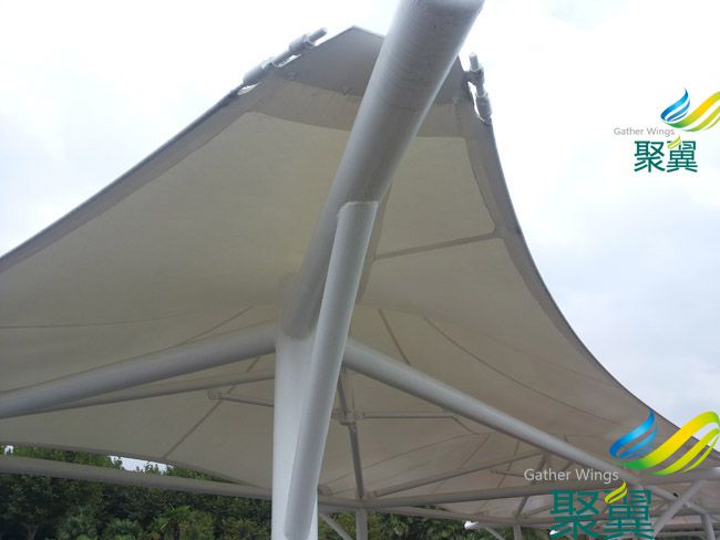 景觀膜結(jié)構(gòu)尺寸:立柱間距 X 6m 懸挑長度 Y 5m 外檐高度 H 2.6m 投影面積 I 39㎡ 景觀膜結(jié)構(gòu)適用于:體育設(shè)施、交通設(shè)施、文化設(shè)施、商業(yè)設(shè)施、建筑設(shè)施、景觀設(shè)施、室內(nèi)裝璜等。 單邊立柱汽車頂棚參數(shù): 1、 鋼材選用:Q235熱鍍鋅高強(qiáng)度優(yōu)質(zhì)鋼材,拋丸防銹處理,表面噴漆,熱鍍鋅螺栓;鋼構(gòu)工藝流程包含基層處理—涂防銹漆—刮膩?zhàn)?mdash;涂磷化底漆等。 2、面積部分采用:希運(yùn)PVP膜材(白色),精度裁剪焊接定型等膜布加工處理;成品檢驗(yàn)后轉(zhuǎn)發(fā)安裝部門。 3、此產(chǎn)品整體質(zhì)保期為1年,希運(yùn)膜布質(zhì)保15年。 上海聚翼遮陽設(shè)備有限公司-集生產(chǎn)、銷售、設(shè)計、制作安裝服務(wù)于一體的專業(yè)化公司.公司主營各種類型聚翼棚業(yè)系列:車棚、汽車車棚、自行車車棚、別墅車棚、鋼結(jié)構(gòu)車棚、膜結(jié)構(gòu)車棚、陽光板車棚 、汽車雨棚及各類風(fēng)格的陽光房,窗棚,露臺棚,等。其特點(diǎn):耐腐蝕、防老化、堅固耐用、安全性好、防噪音、不滲水、抗風(fēng)壓能力強(qiáng),易保養(yǎng)等特點(diǎn)。