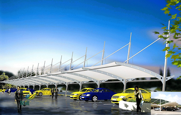 膜結(jié)構(gòu)停車棚藝術(shù)性:除了一般雨蓬不可比擬的實用、耐用、遮風(fēng)擋雨的功能外,更是一座雕塑,一件藝術(shù)品,給人美的視覺享受。其柔美,其曲線,其剛?cè)岵?jì),其豐富造型,其潔白無瑕,讓人眼前一亮,回味悠長。
