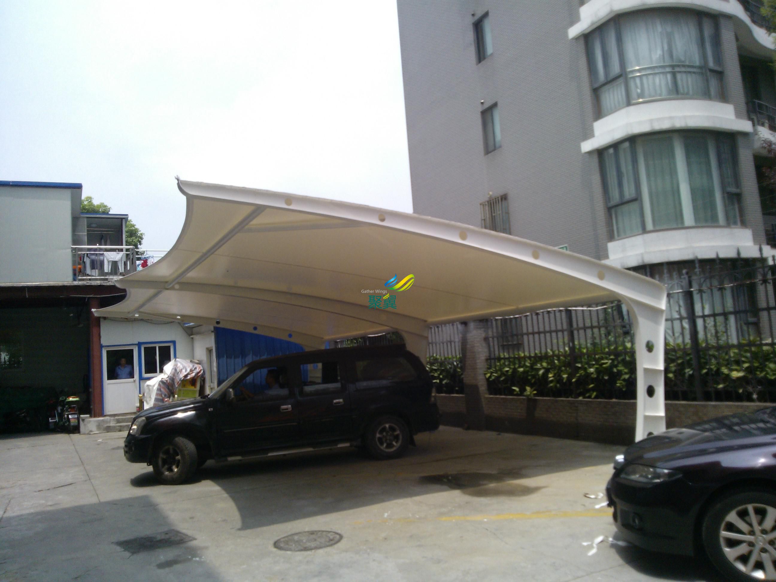 JY90C膜結(jié)構(gòu)車棚4車位案例,充分利用了有限的停車空間,簡(jiǎn)潔、大方實(shí)用的最佳占地面積。主體采用加強(qiáng)型鋼結(jié)構(gòu),鋼結(jié)構(gòu)專用底面油漆。車棚面料采PVDF材質(zhì)保15年,自潔性能好,其表面無靜電,對(duì)灰塵沒有吸附力,易清洗。從而使得膜結(jié)構(gòu)建筑保持表面亮麗潔白,室外使用壽命約為20年。