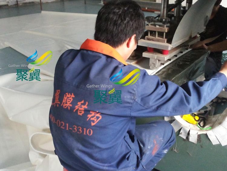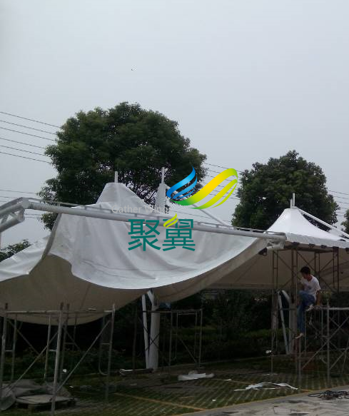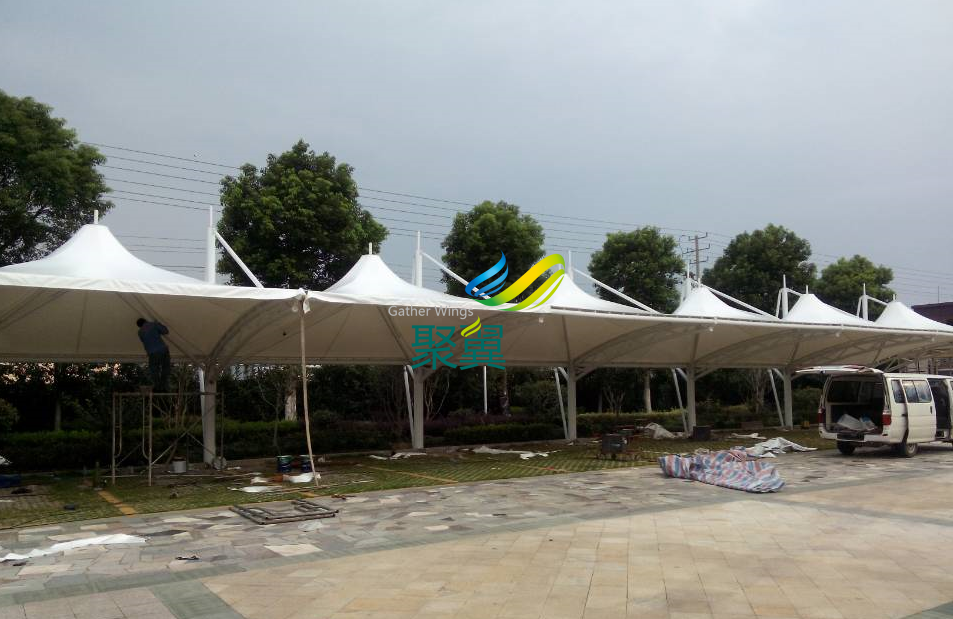 冒頂膜結(jié)構(gòu)車棚安裝膜布圖片: