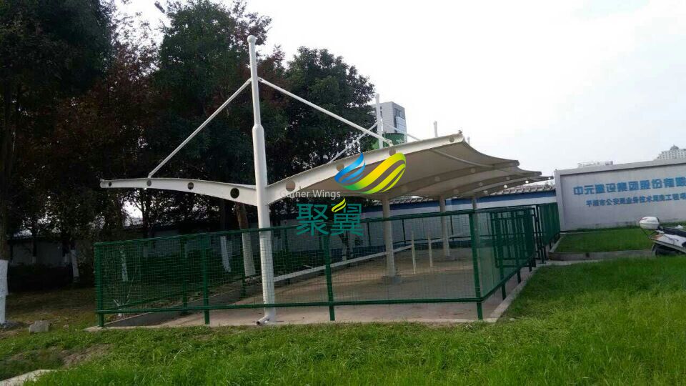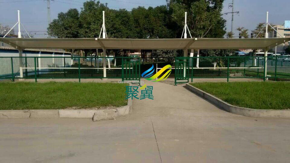 浙江平湖公安局雙開自行車棚立柱間距6米,伸出3米,立柱高4.5米,自行車棚骨架采用Q235鋼材料,膜布面料采用PVC960g膜材料。自行車棚款式多樣,根據(jù)現(xiàn)場尺寸量身定制。遮陽效果好,防水防火安全穩(wěn)定性強(qiáng)!聚翼自行車棚加工廠全國配貨安裝,產(chǎn)品多樣化款式及材料方案。24小時客戶咨詢熱線:400-021-3310