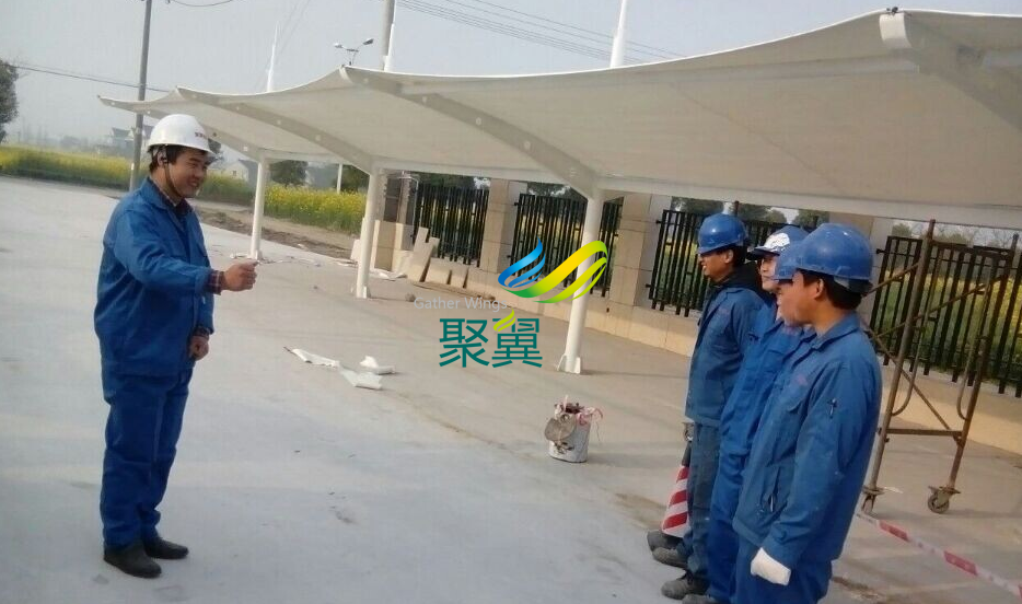 江蘇省泰州市膜結(jié)構(gòu)車棚安裝膜布展示圖:(圖2)