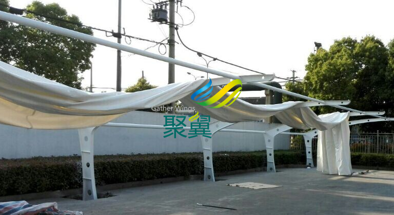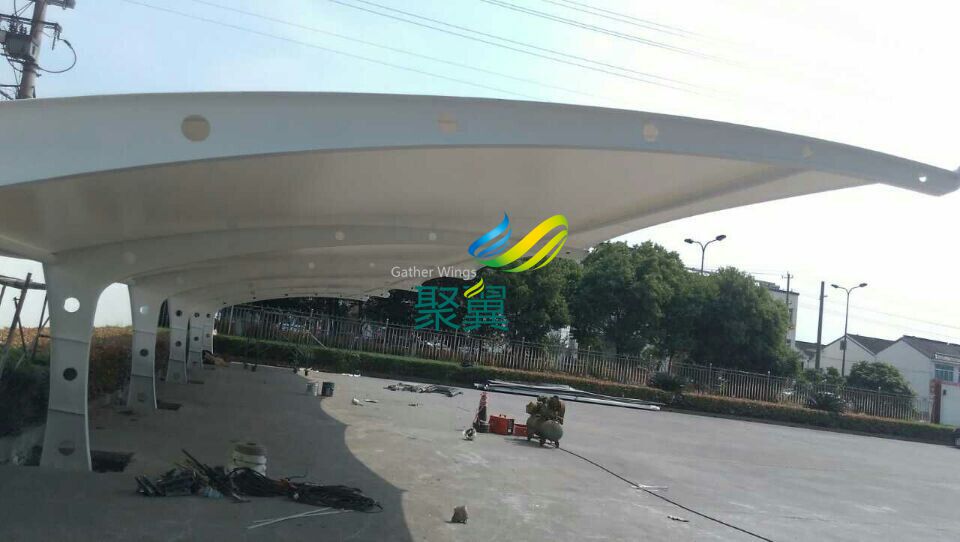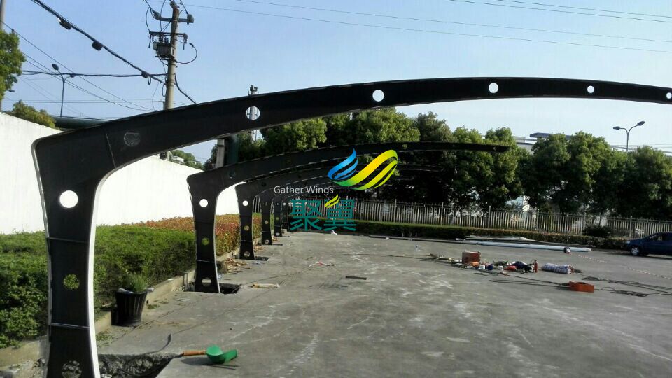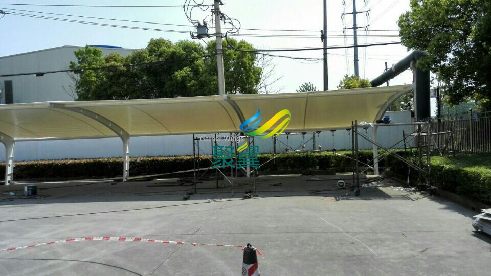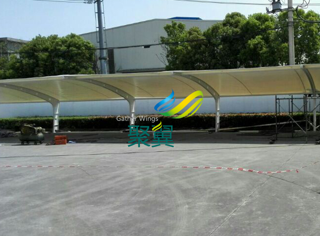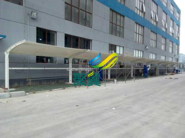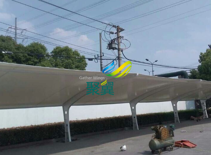 江陰異形鋼膜結(jié)構(gòu)車棚,長(zhǎng)6.1米,間距5.45米,立柱高3米,前高3米,后高2米,特殊情況,特殊定制! 電話:021-61726028 / 60489599 / 60485955 傳真:021-33275120