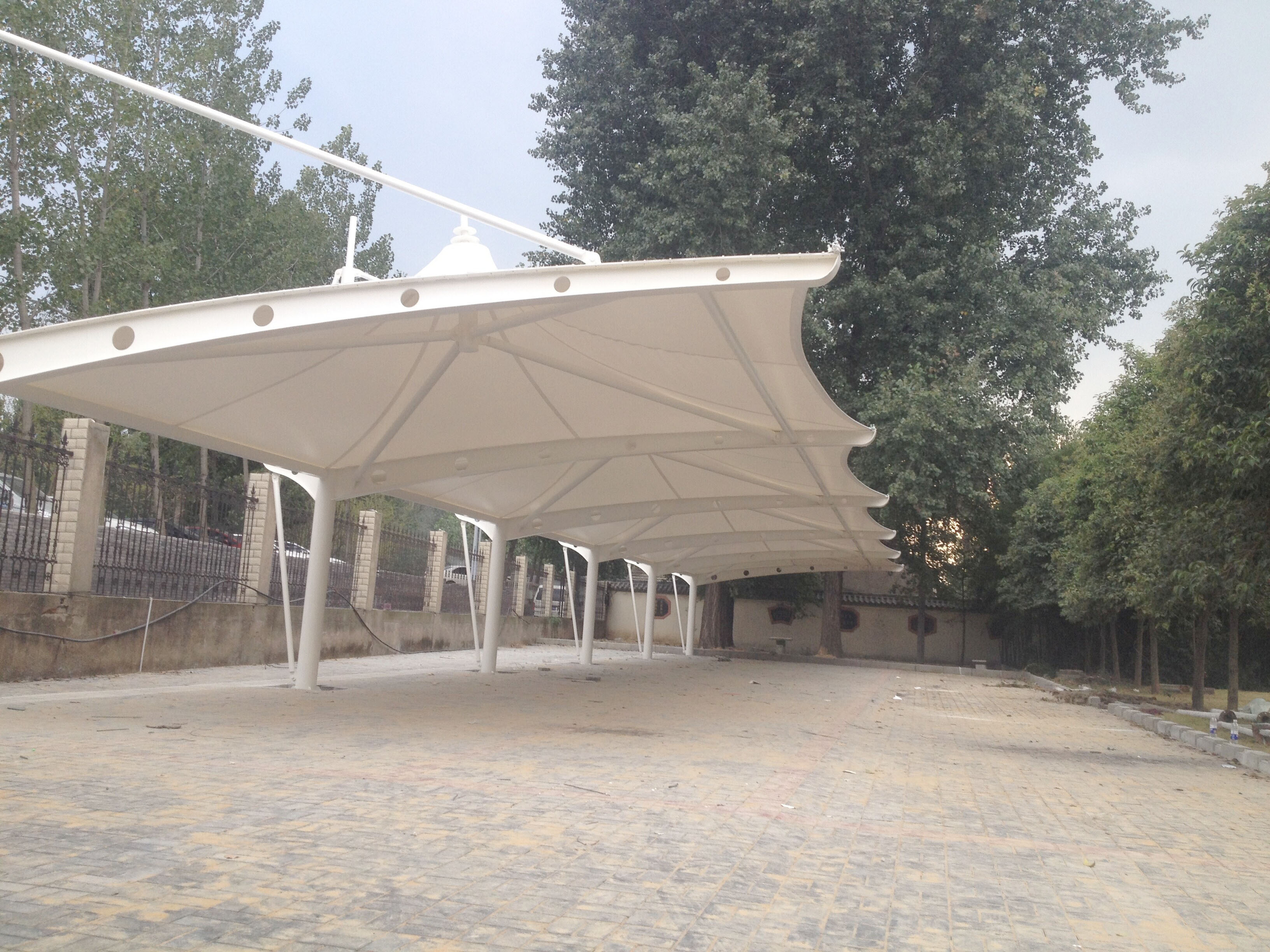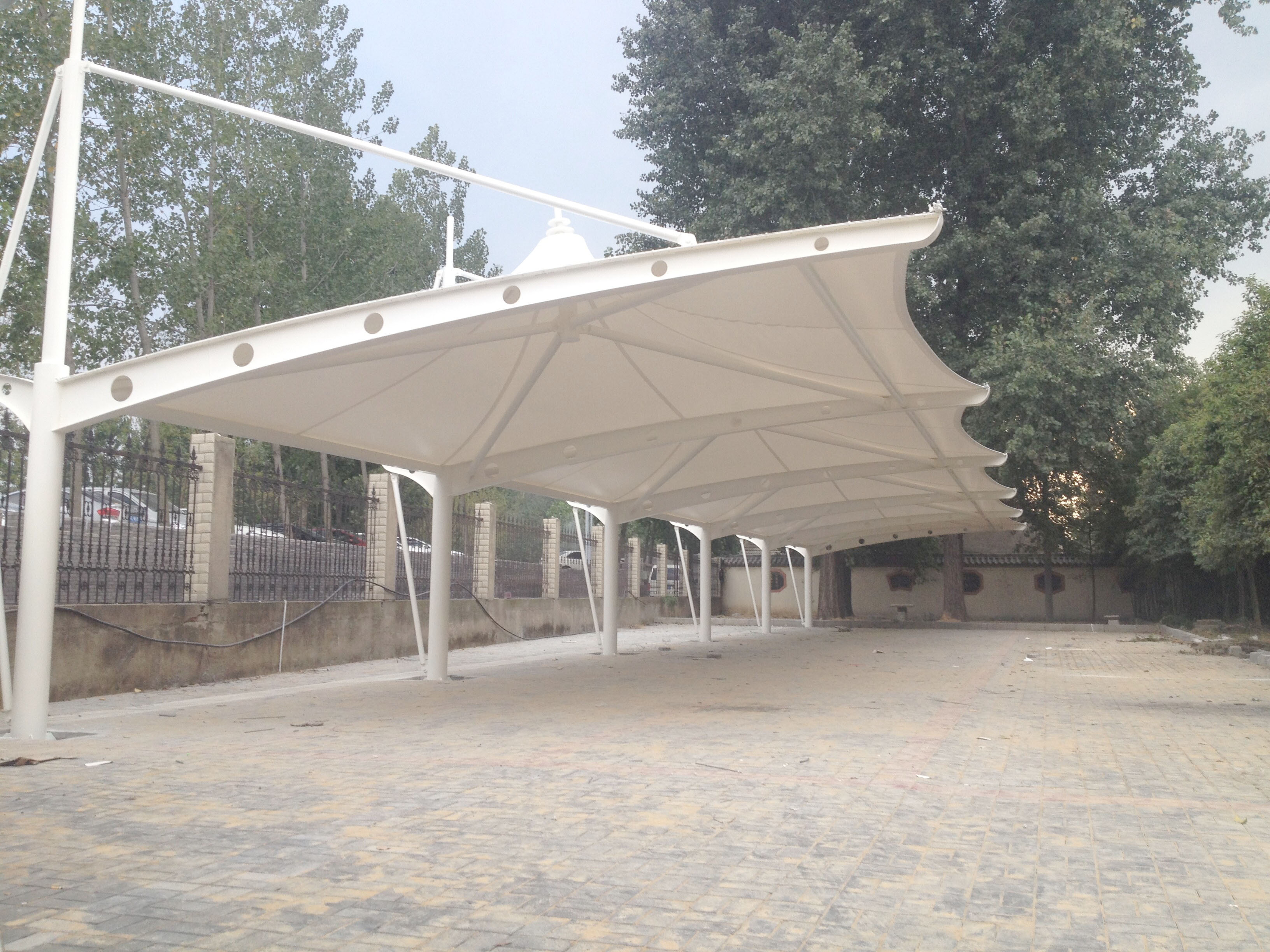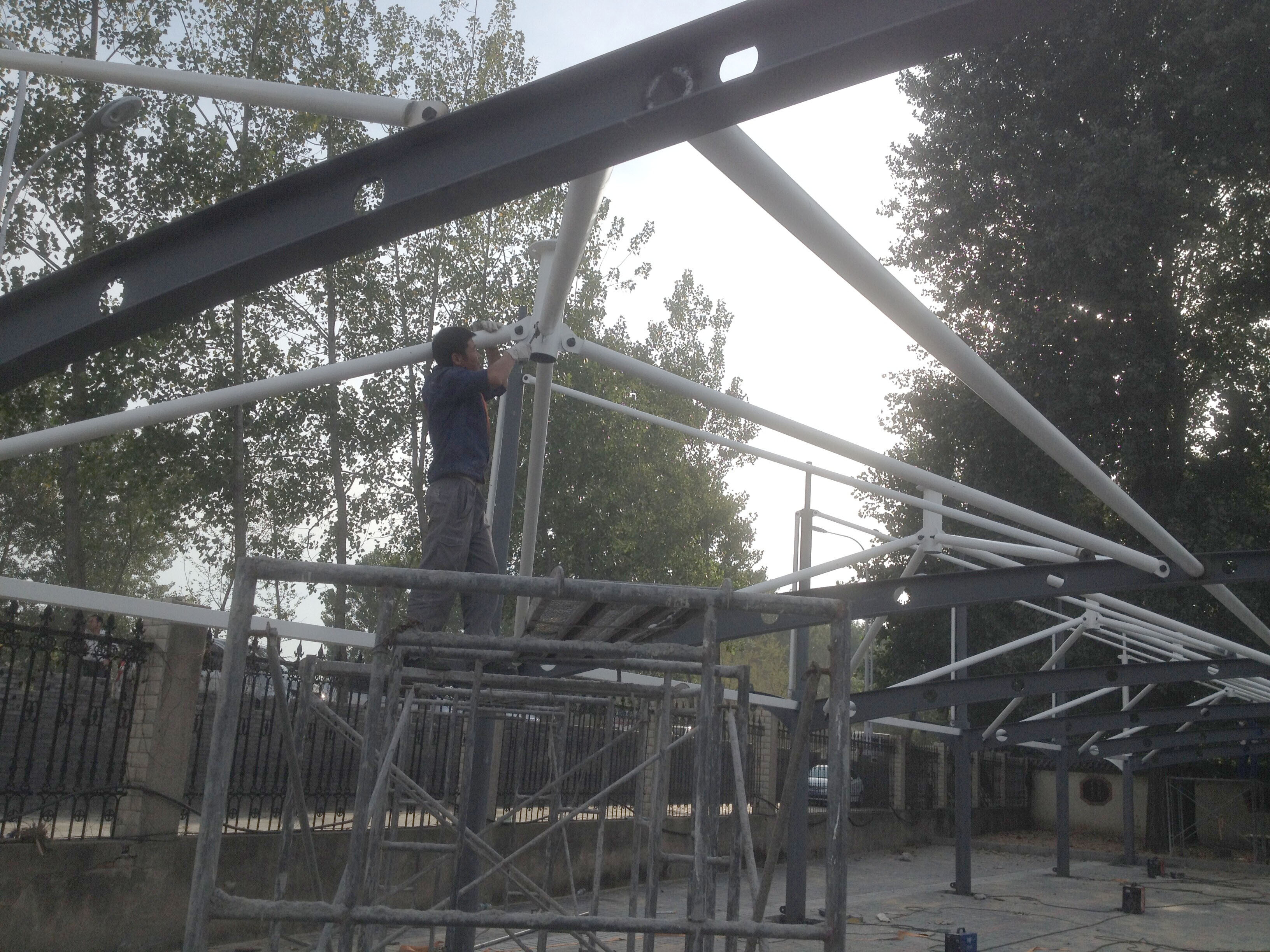 新沂瓦窯中學冒頂車棚尺寸為28.5*6,間距5.7米,面料采用賽德樂s1000-II膜材,膜材的壽命及使用保障國產膜材為15-30年。冒頂車棚根據(jù)施工現(xiàn)場作業(yè)和技術要求本廠采用德國塞德樂s1100-II(白色),和Q235熱鍍鋅高強度優(yōu)質鋼材及其他精品配件精加工制作成品。安裝細節(jié):主體為鋼構焊接,采用主框架與部分結構同步安裝施工,油漆現(xiàn)場作業(yè)完成。膜布廠內加工成品現(xiàn)場安裝細節(jié)處理。需膜結構車棚可以咨詢我司,詳情電話:4008-613-119(客服熱線)