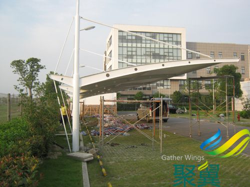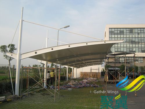 膜結(jié)構(gòu)使用壽命及特點(diǎn):膜結(jié)構(gòu)車棚的篷布材質(zhì)是膜材,而膜材的最大特點(diǎn)是強(qiáng)度高、耐久性好、防火難燃、自潔性好,不受紫外線影響,使用壽命長,一般15-30年。具有高透光率,透光率為13%,對(duì)熱能反射率73%,熱吸收量很少。正是因?yàn)檫@種劃時(shí)代的膜材料的發(fā)明,使膜結(jié)構(gòu)車棚成為現(xiàn)代化的永久建筑。膜結(jié)構(gòu)停車棚的市場(chǎng)前景:隨著都市現(xiàn)代化步伐的加快,汽車成為任何一個(gè)都市不可缺少的交通工具。我國由于汽車工業(yè)高速發(fā)展,城市的汽車擁有量成倍上升,但城市建設(shè)規(guī)劃沒能盡快適應(yīng)這一發(fā)展的要求,常常是車無停放之地。所以在建設(shè)群規(guī)劃時(shí)就應(yīng)充分考慮停車場(chǎng)的問題,把停車場(chǎng)的建設(shè)和規(guī)劃當(dāng)成現(xiàn)代城市建設(shè)規(guī)劃的重要組成部分,變得越來越重要。同樣,膜結(jié)構(gòu)在停車場(chǎng)建設(shè)中也擔(dān)當(dāng)重要角色 聚翼為您介紹一下膜結(jié)構(gòu)的保養(yǎng)及維修: