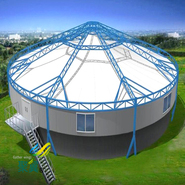 之所以使用污水池加蓋膜對廢氣進行處理,是因為污水池中的廢氣成分復(fù)雜,腐蝕性極高,對環(huán)境的危害很大,如不加以處理,對環(huán)境和人體都會產(chǎn)生很大的危害,所以,采用污水池加蓋膜反吊膜的形式,可以很好的避免污水池廢氣泄漏問題,將廢氣密封在一個密閉的空間,杜絕與空氣的接觸,而且反吊膜采用環(huán)境專用膜材,抗拉性很強,池體四周用鋼架支撐,采用膜材反吊的形式,將鋼結(jié)構(gòu)反吊在膜材外側(cè),這樣,就從根本上解決了鋼結(jié)構(gòu)被池內(nèi)廢氣腐蝕的現(xiàn)象,延長了鋼材的使用壽命,也發(fā)揮了污水池加蓋膜反吊膜膜材抗腐蝕的作用,是污水池廢氣除臭的*佳選擇。