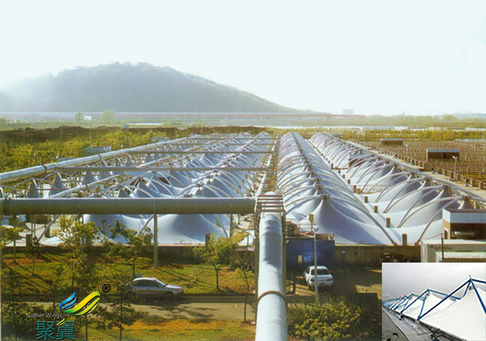3.污水池加蓋造價(jià)低。一般來說污水池的跨度一般較大,需要鋼材多。使用反吊膜建筑可有效減少鋼材使用率,從而降低成本。