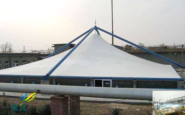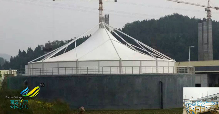 2.污水池加蓋優(yōu)質(zhì)的PVC涂層;改變了傳統(tǒng)涂層材料的表面特性,具有優(yōu)良的抗污染能力,能長(zhǎng)久保持清潔干凈,這樣,不僅增強(qiáng)了膜材的抗氧化性,而且延長(zhǎng)了膜材的使用壽命。