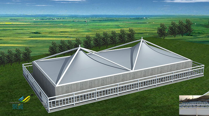 1.密封性能好;污水池加蓋的膜材具有抗拉性能強,密封性好的特點,可以將廢氣密封在一個密閉的空間,阻止廢氣與空氣的接觸,從而造成二次污染。