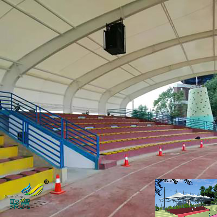 3.防火,耐腐蝕——膜結(jié)構(gòu)看臺不僅具有優(yōu)良的抗沖擊性能、電性能、熱穩(wěn)定性和耐化學腐蝕性。熔融溫度高達200度達到B1、DIN4102防火等級標準,燃燒時也不會滴落。